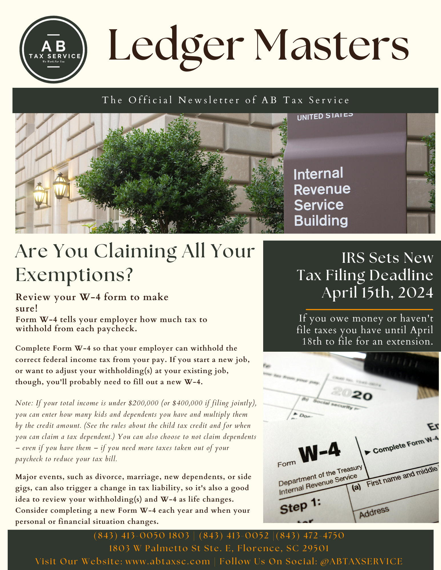 Are You Claiming All Your Exemptions? Posted byCL Pinto MartinezMarch 29, 2024March 12, 2024Posted inUncategorized Review your W-4 form to make sure! Share this: Click to share on X (Opens in new window) X Click to share on Facebook (Opens in new window) Facebook Like Loading... Related