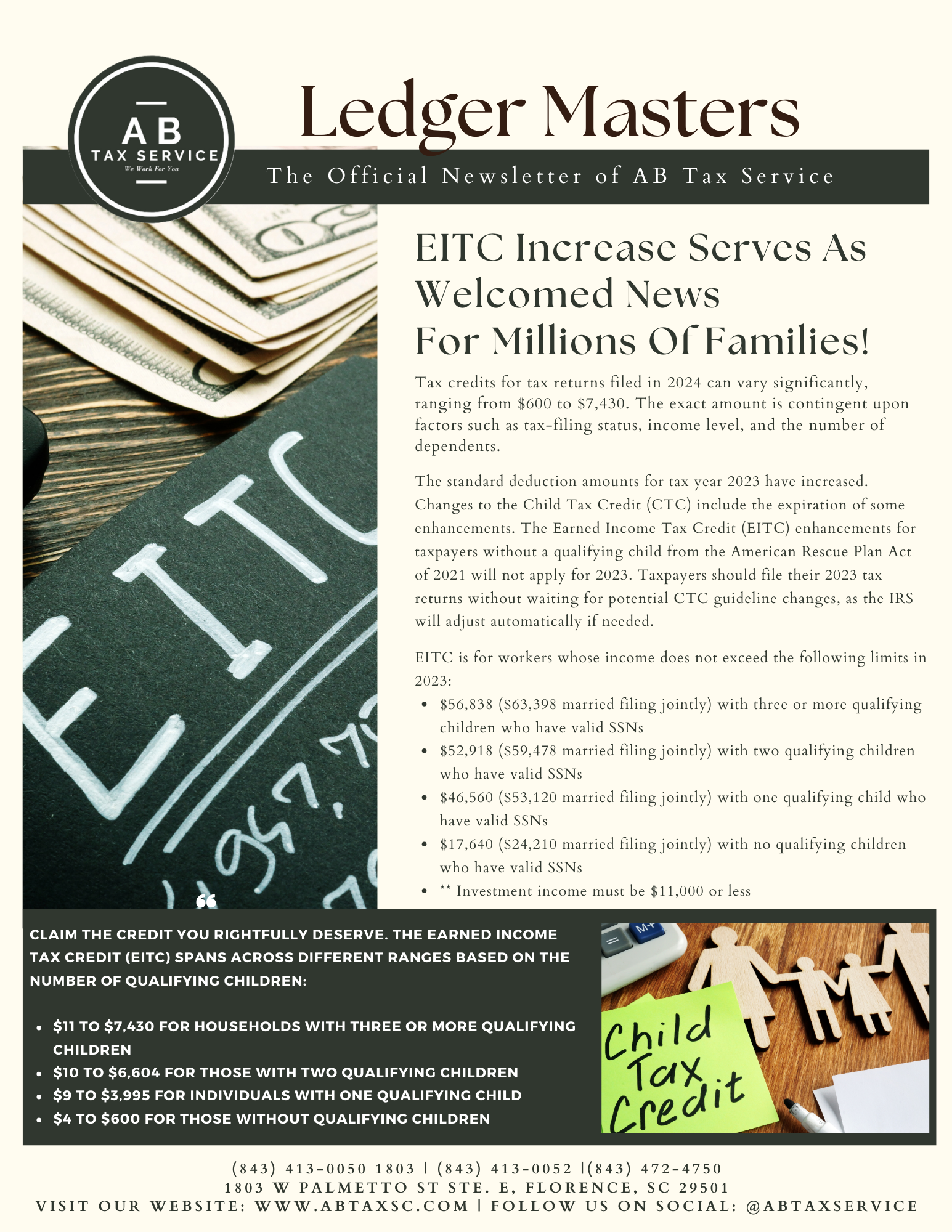Ledger Masters is a monthly e-Newsletter produced by the industry experts at AB Tax Service to help you stay informed and up to date a variety of “Money Matters” topics to help you keep more of what you earn.